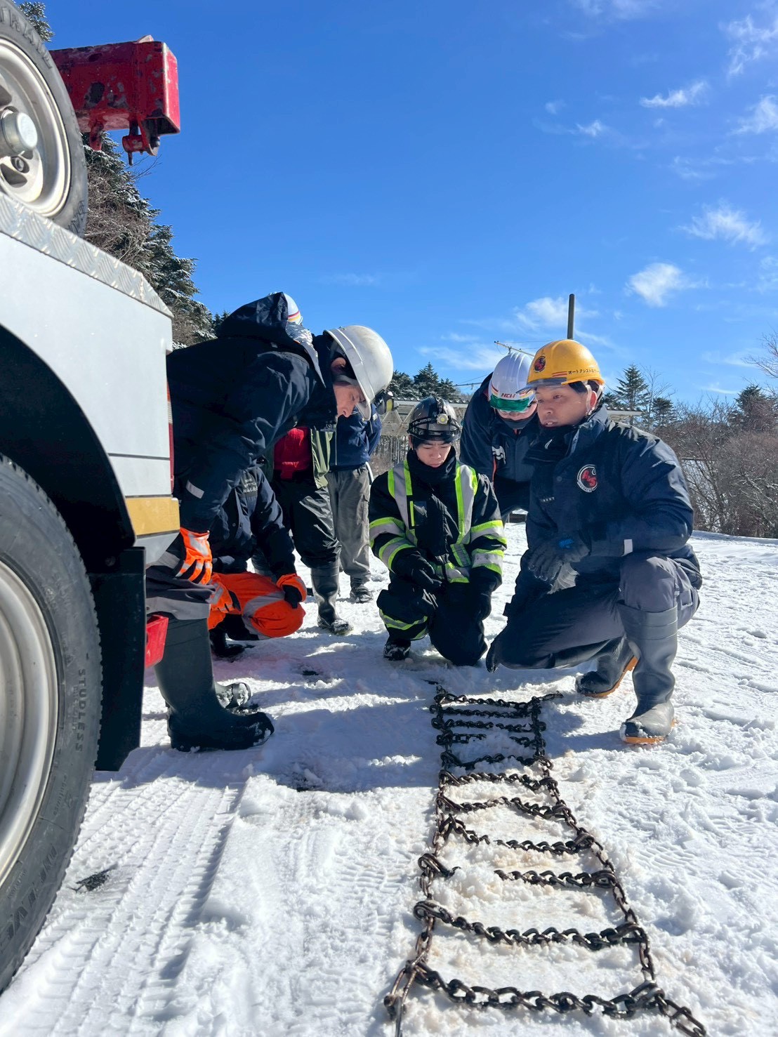 2月18日(水)、富士山二合目付近にて雪道作業研修会を実施しました。